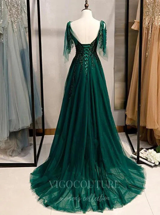 Emerald Green Beaded Prom Dresses Lace Applique Evening Dress 22131