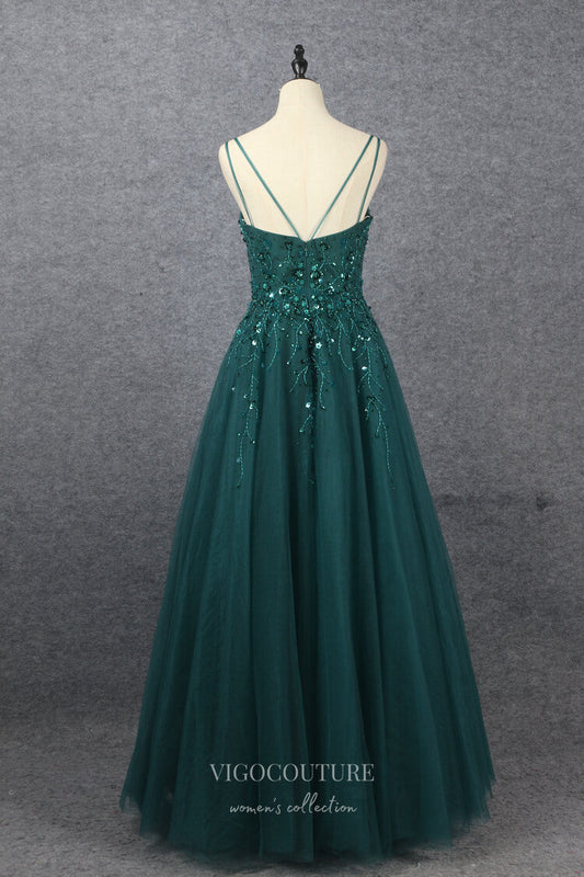 Dark Green Beaded Prom Dress 2025 Spaghetti Strap Formal Dress 20555