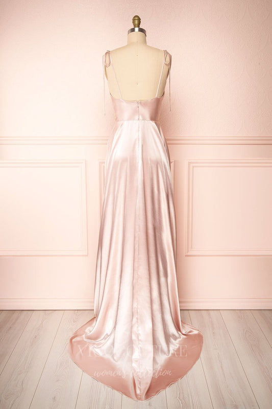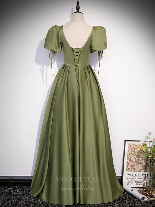Puffed Sleeve Prom Dresses Satin A-Line Formal Dresses 20869
