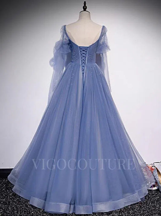 Light Blue Beaded Prom Dress 2022 Long Sleeve Prom Gown
