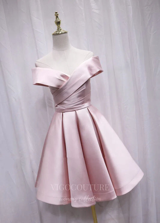Pink Satin Homecoming Dress Off the Shoulder Hoco Dress hc059