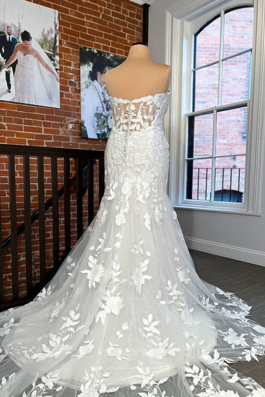 Elegant Ivory Floral Lace Mermaid Wedding Dress with Sweetheart Neckline & Illusion Back – W2346