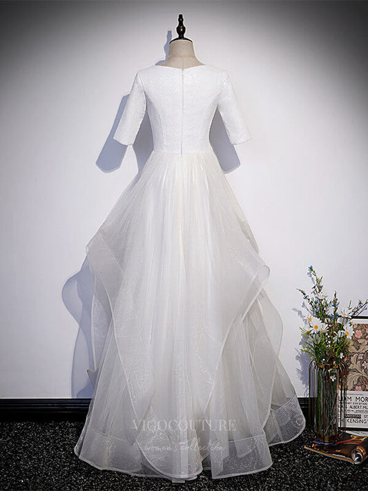 Ivory Tiered Half Sleeve Prom Dress 20879