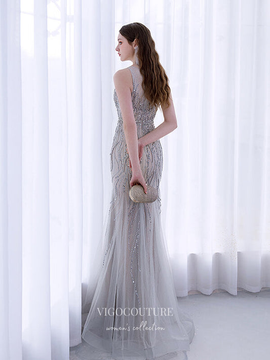 Silver Beaded Prom Dresses Mermaid Formal Dresses 21508