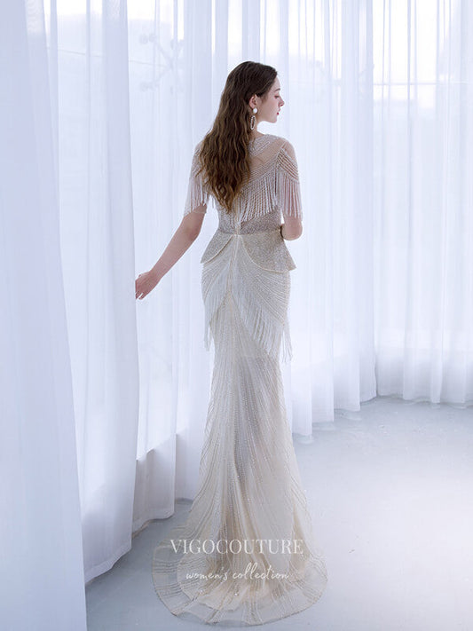 Silver Beaded String Prom Dresses Mermaid Formal Dresses 21511