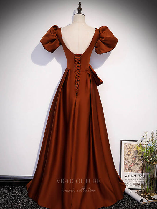 Burnt Orange Puffed Sleeve Prom Dresses Square Neck 20870