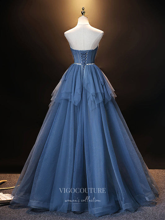 Dusty Blue Prom Dresses Beaded Tulle Formal Dresses 21444