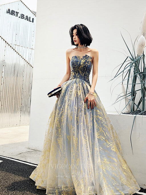 Gradient Strapless Sparkly Tulle Prom Dress 20916