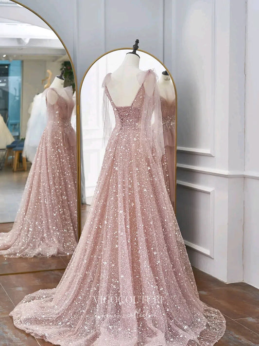 Sparkly Blush Sequin Prom Dresses Spaghetti Strap Formal Dresses 21189