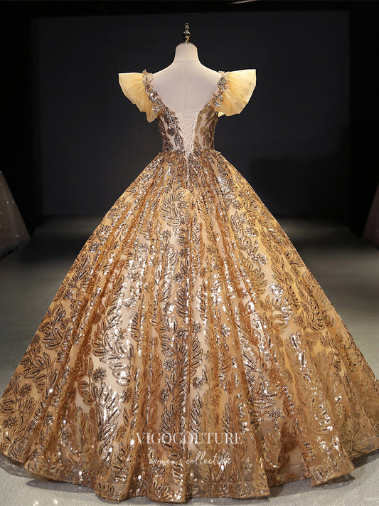 Gold Sequin Quinceanera Dresses Sparkly Tulle Princess Dresses 21422