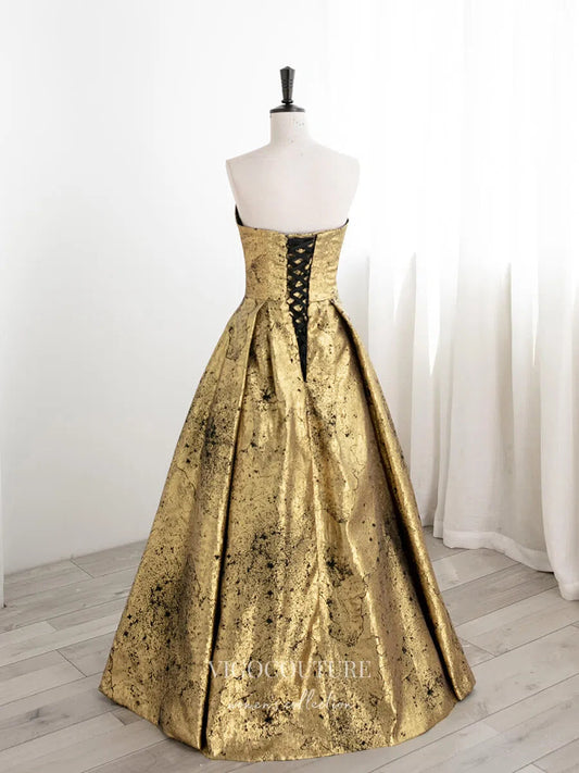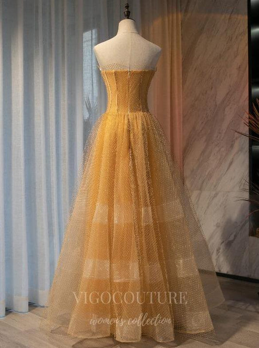 Gold Strapless Prom Dresses A-Line Formal Dresses 21322