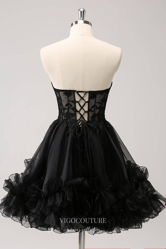 Black Sweetheart Ruffled Homecoming Dresses Strapless Back to School Dress hc393