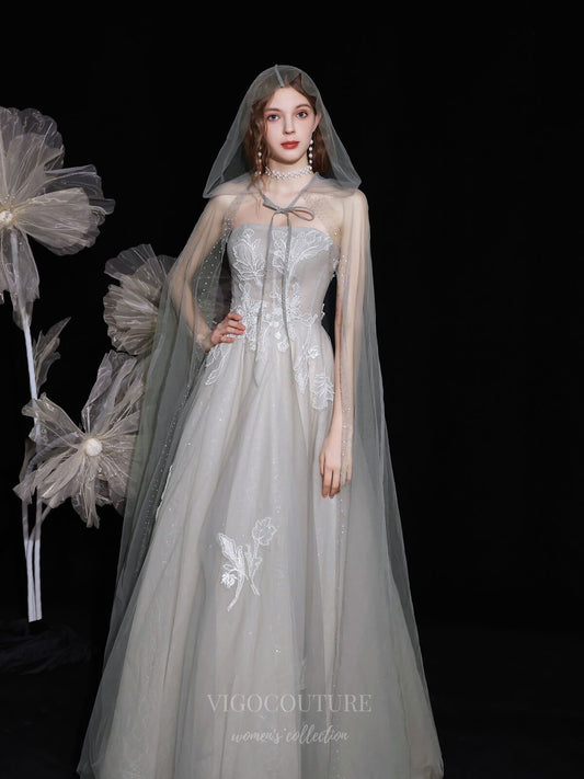 Grey Beaded Tulle Lace Applique Prom Dress 20895