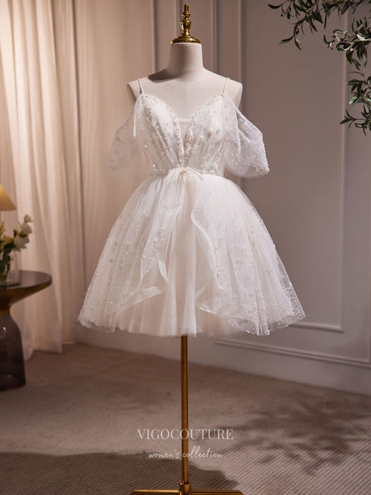 Ivory Spaghetti Strap Hoco Dresses with Pearl Sweetheart Neck Graduation Dress hc249