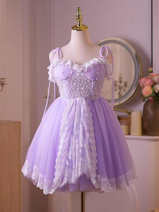 Lavender Lace Hoco Dresses Off the Shoulder Graduation Dress with Butterfly hc248