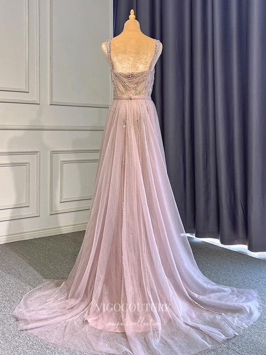 Mauve Beaded Prom Dresses with Slit Gold Overskirt Sheath Formal Dresses 22073
