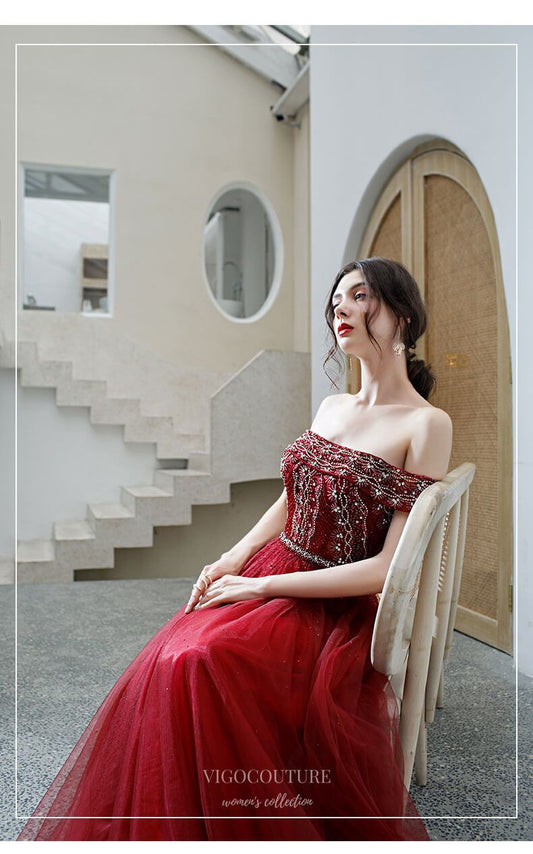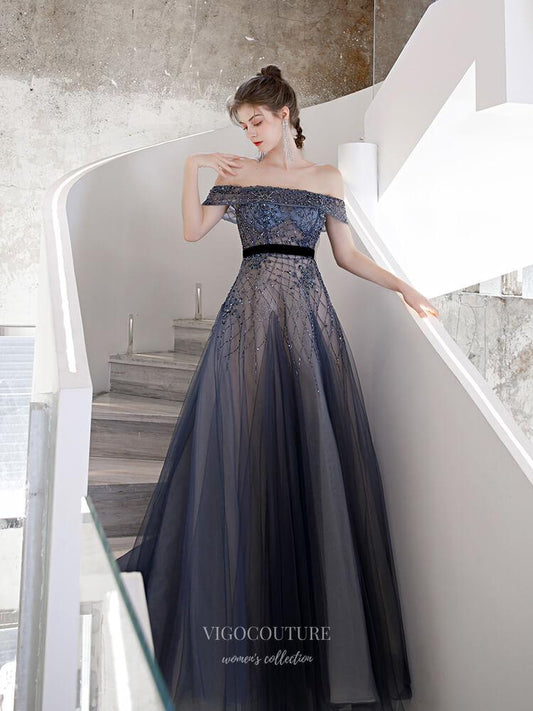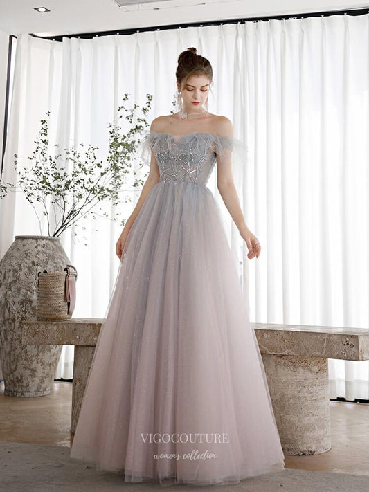 Beaded Off the Shoulder Formal Dresses A-Line Prom Dress 21635