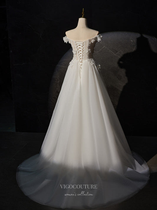 Ivory Lace Applique Prom Dresses 2024 Off the Shoulder Formal Gown 24249