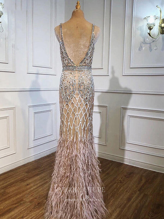 Beaded Mermaid Prom Dresses Plunging V-Neck Evening Dresses 21266