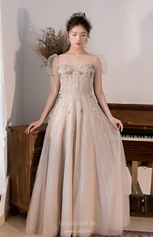 Beaded Prom Dresses Puffed Sleeve Evening Dresses 21241