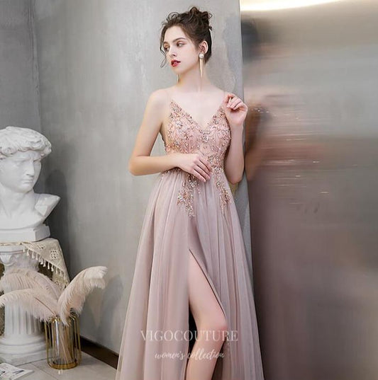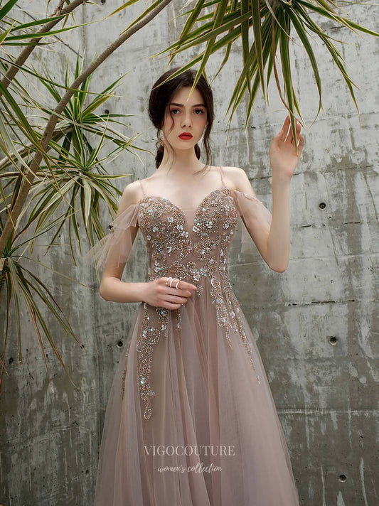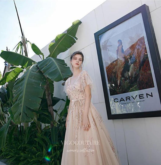 Beaded Short Sleeve V-Neck Prom Dress 20249