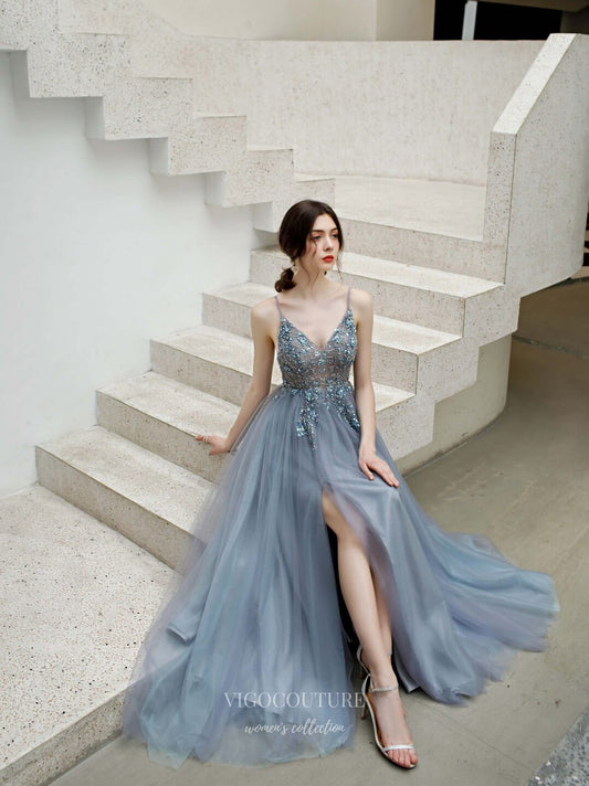 Beaded Sleeveless Prom Dress 2022 Round Neck Prom Gown