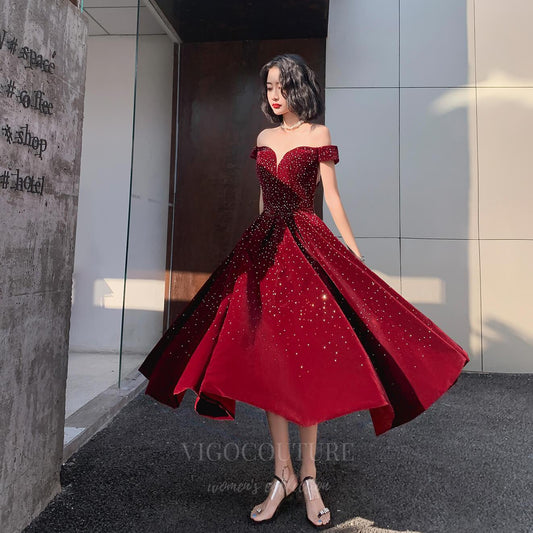 Beaded Two-Piece Prom Dresses Tea-Length Evening Dresses 21220
