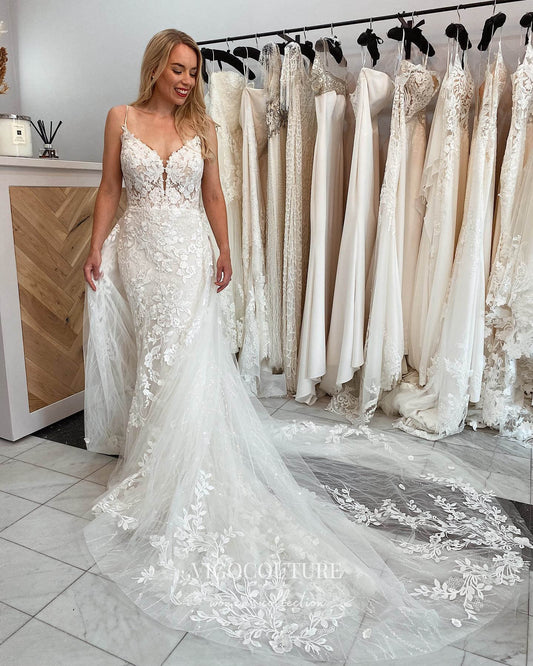 Mermaid Lace Applique Wedding Dresses Plunging V-Neck Bridal Dresses W0070