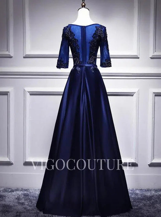 Lace Applique Prom Dress 2022 Half Sleeve Satin Prom Gown