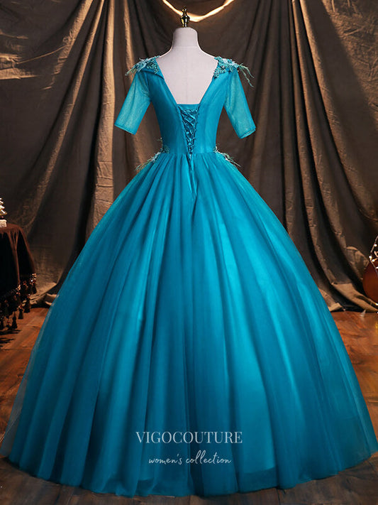 Lace Applique Quinceanera Dresses Short Sleeve Sweet 15 Dresses 21390