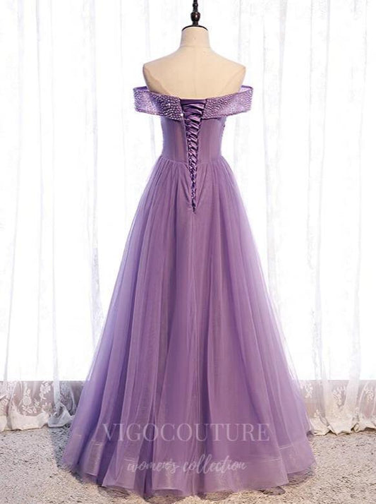Lavender Off the Shoulder Tulle Puffed Sleeve Prom Dress 20900