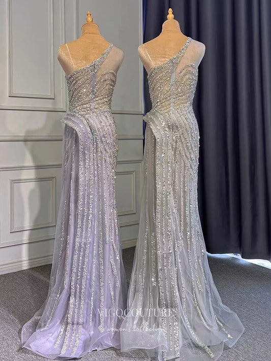 Lavender Beaded Prom Dresses One Shoulder Sheath Evening Dresses 22071
