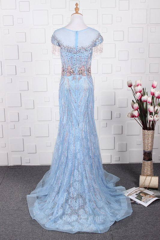 Light Blue Beaded Prom Dresses Mermaid Evening Dresses 20762