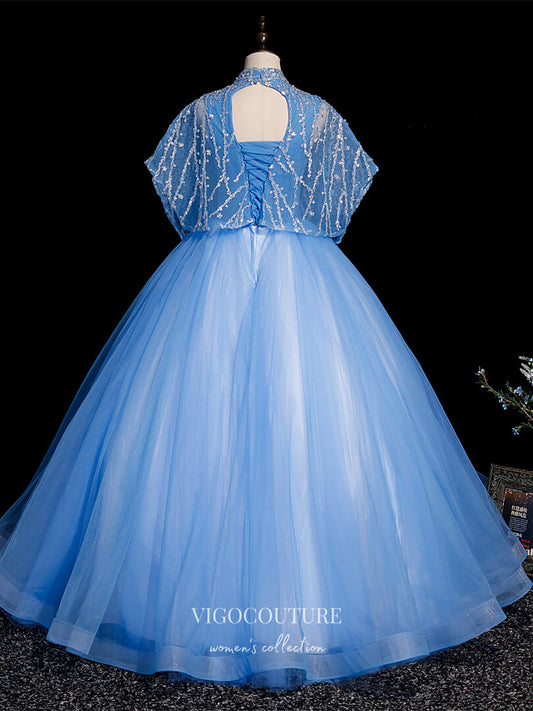 Light Blue Beaded Quinceanera Dresses Bat Sleeve Princess Dresses 21413
