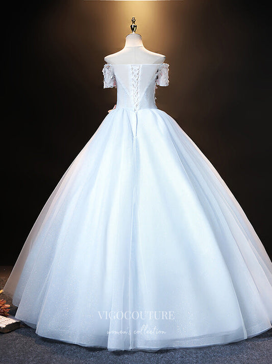 Light Blue Lace Applique Quinceanera Dresses Off the Shoulder Sweet 16 Dresses 21402