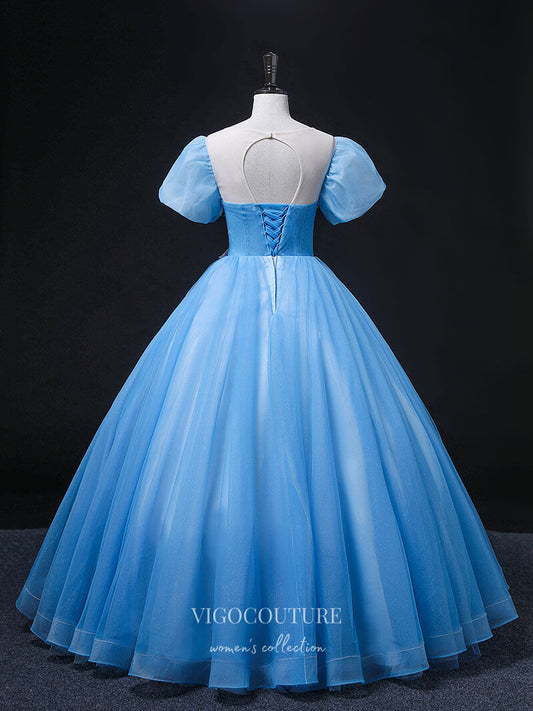 Light Blue Lace Applique Quinceanera Dresses Puffed Sleeve Sweet 15 Dresses 21359