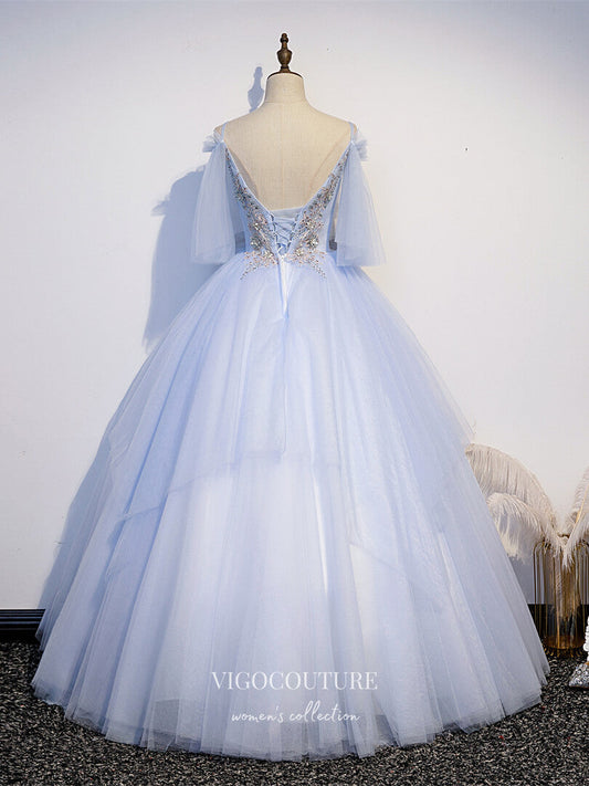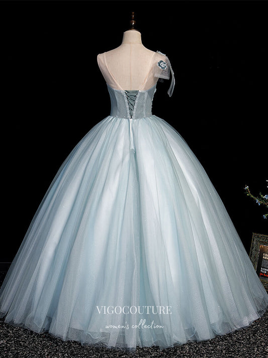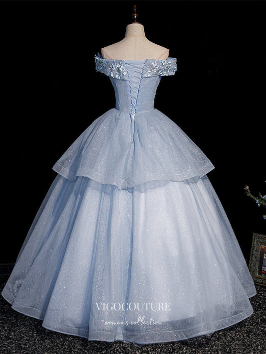 Light Blue Lace Applique Quinceanera Dresses Sparkly Tulle Princess Dresses 21415