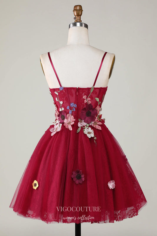 Red 3D Flower Lace Applique Homecoming Dresses Spaghetti Strap Back to School Dress hc420