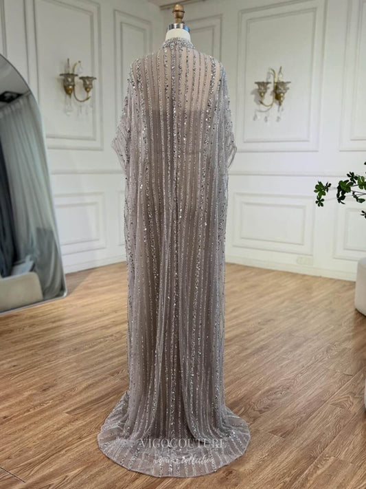 Grey Beaded Mermaid Removable Cape Prom Dress 20283