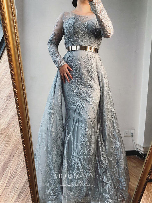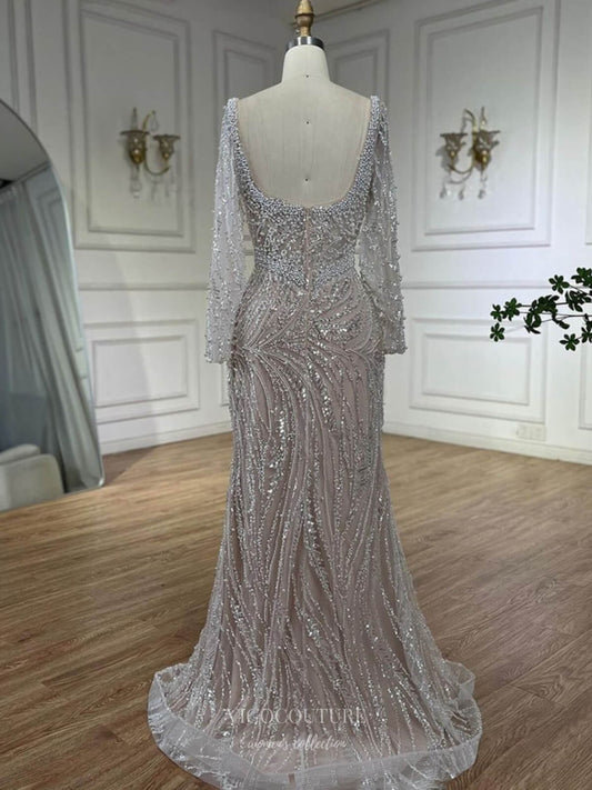 Grey Long Sleeve Formal Dresses Beaded Evening Dresses 21532