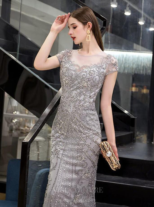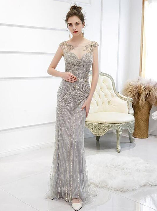 Grey Sparkly Beaded Evening Gowns Mermaid Pageant Dress 22092