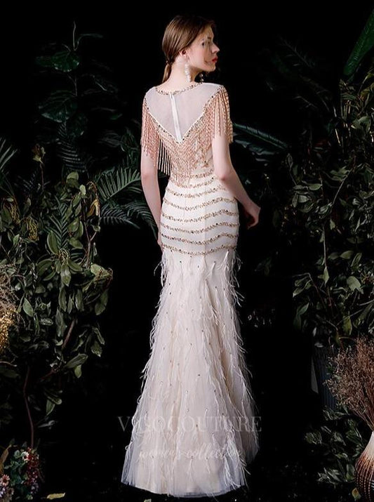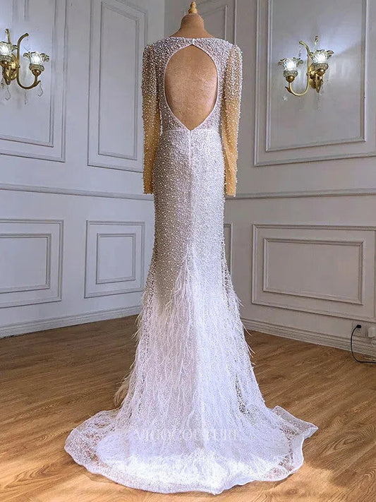 Ivory Beaded Mermaid Prom Dresses Long Sleeve Formal Dresses 21233
