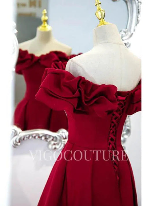 Red Satin Prom Gown Off the Shoulder Prom Dress 20283