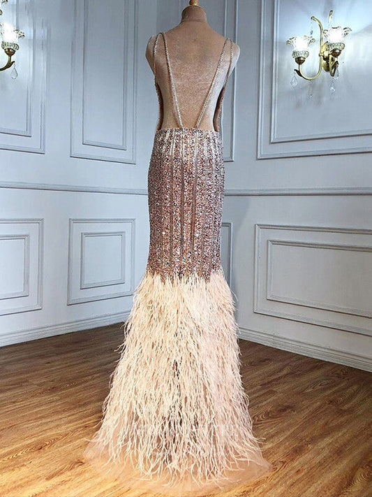 Beaded Mermaid Prom Dresses V-Neck Evening Dresses 21211