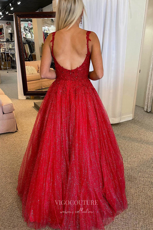 Sparkly Lace Applique Cheap Prom Dresses 2024 V-Neck Open Back 24230