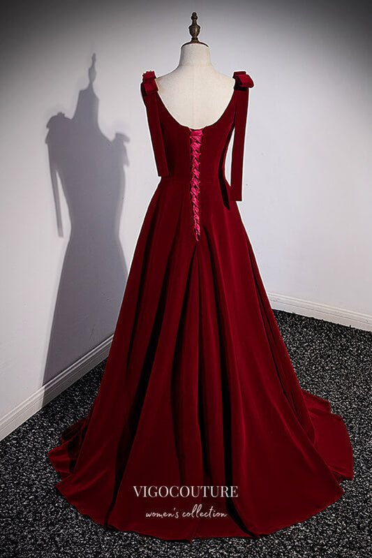 Burgundy Velvet Formal Dress A-Line Wide Strap Prom Dresses 21662