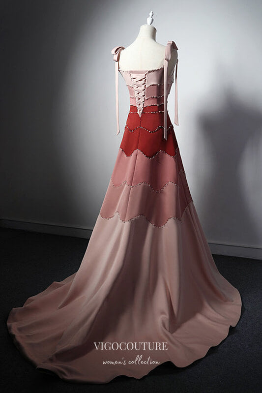 Elegant Splice Gradient Satin Prom Dress with Spaghetti Strap 22325