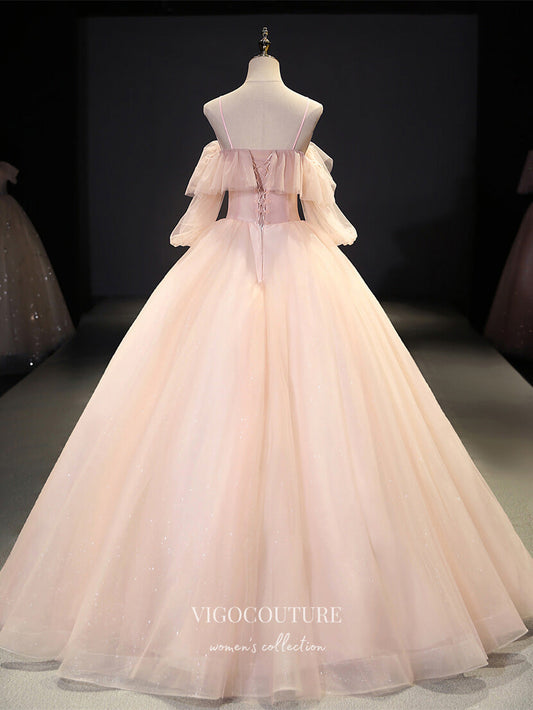 Blush Extra Long Sleeve Quinceañera Dresses Lace Applique Ball Gown 20463