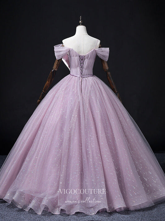 Bow-Tie Sparkly Tulle Prom Dresses Off the Shoulder Formal Dresses 21353