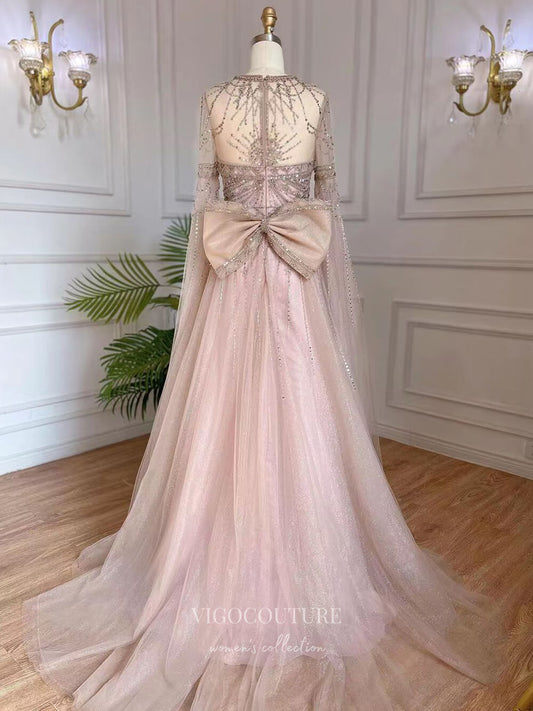 Pink Beaded Prom Dresses Extra Long Sleeve 1920s Evening Dress 22135